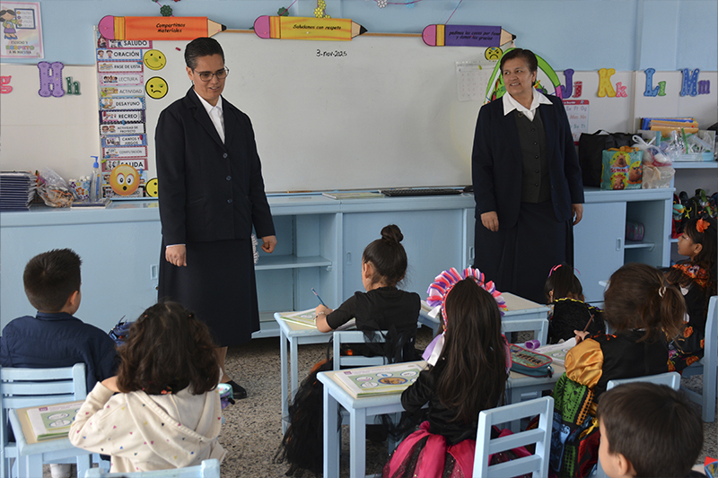 El 3 de noviembre recibimos con alegría la visita de nuestra Madre Provincial, Ma. Concepción Caballero Granados, quien recorrió nuestro Colegio y compartió momentos de reflexión con nuestra comunidad educativa. Nos invitó a permanecer firmes en el carisma congregacional, viviendo con alegría, sencillez y fraternidad el espíritu franciscano que nos caracteriza. Agradecemos con cariño a Madre Ma. Concepción Caballero Granados, nuestra Madre Provincial, por su Visita Canónica al Colegio Simón Bolívar. Su cercanía, alegría y palabras fueron una inspiración para toda nuestra comunidad educativa. Pedimos a Dios que siga iluminando su camino y colmándola de abundantes bendiciones en su misión.