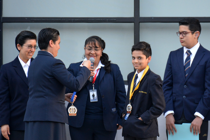 Después de los honores a la bandera los alumnos de secundaria leyeron una breve reseña de la historia de la bandera de México, para finalizar con la felicitación de los alumnos del taller de Taekwondo que participaron en la Copa Ornelas 2020.