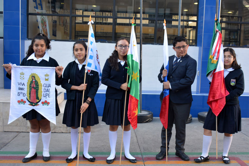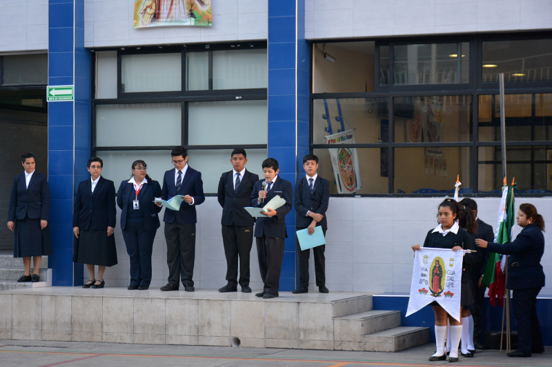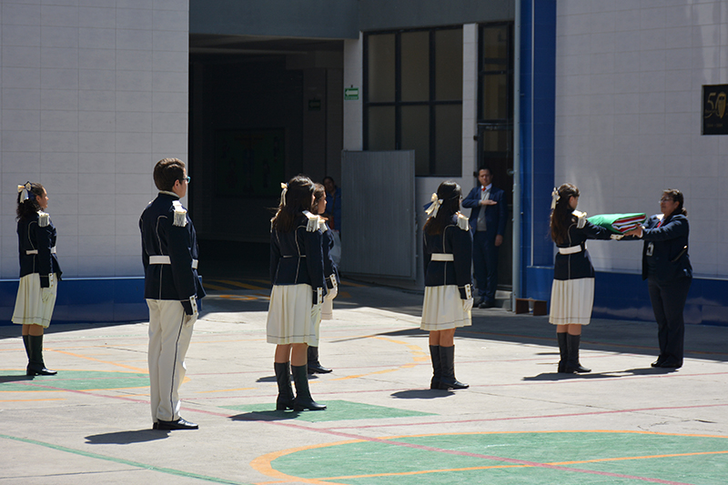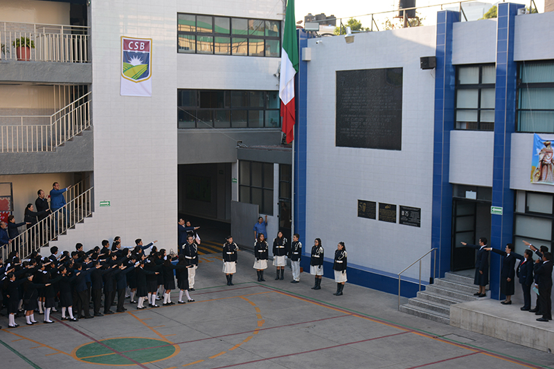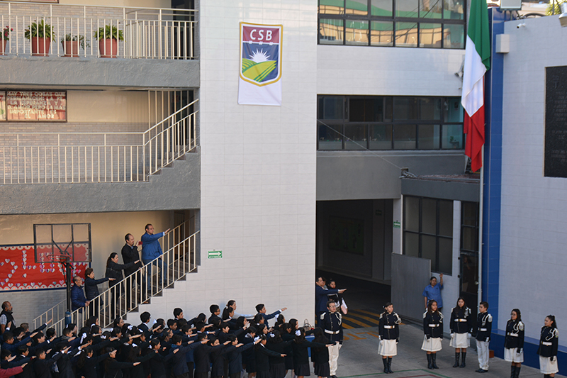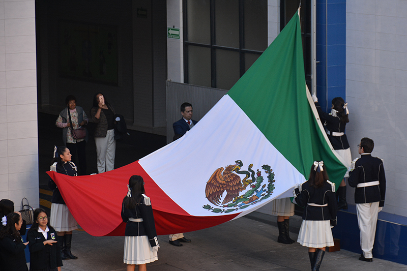Los alumnos de Secundaria participaron en el acto cívico de este lunes 24 de febrero, en conmemoración a la celebración del Día de la Bandera, ofreciéndole el respeto que este símbolo patrio se merece y significa para nuestra nación, al evento asistieron padres de familia y autoridades que junto con los alumnos entonaron el Himno Nacional y el Juramento a la Bandera.